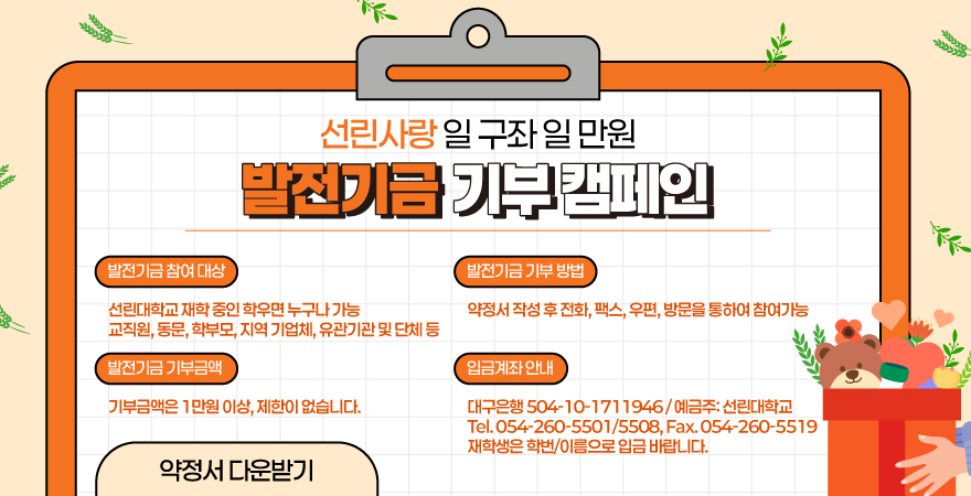 선린사랑 일 구좌 일 만원 발전기금 기부 캠페인